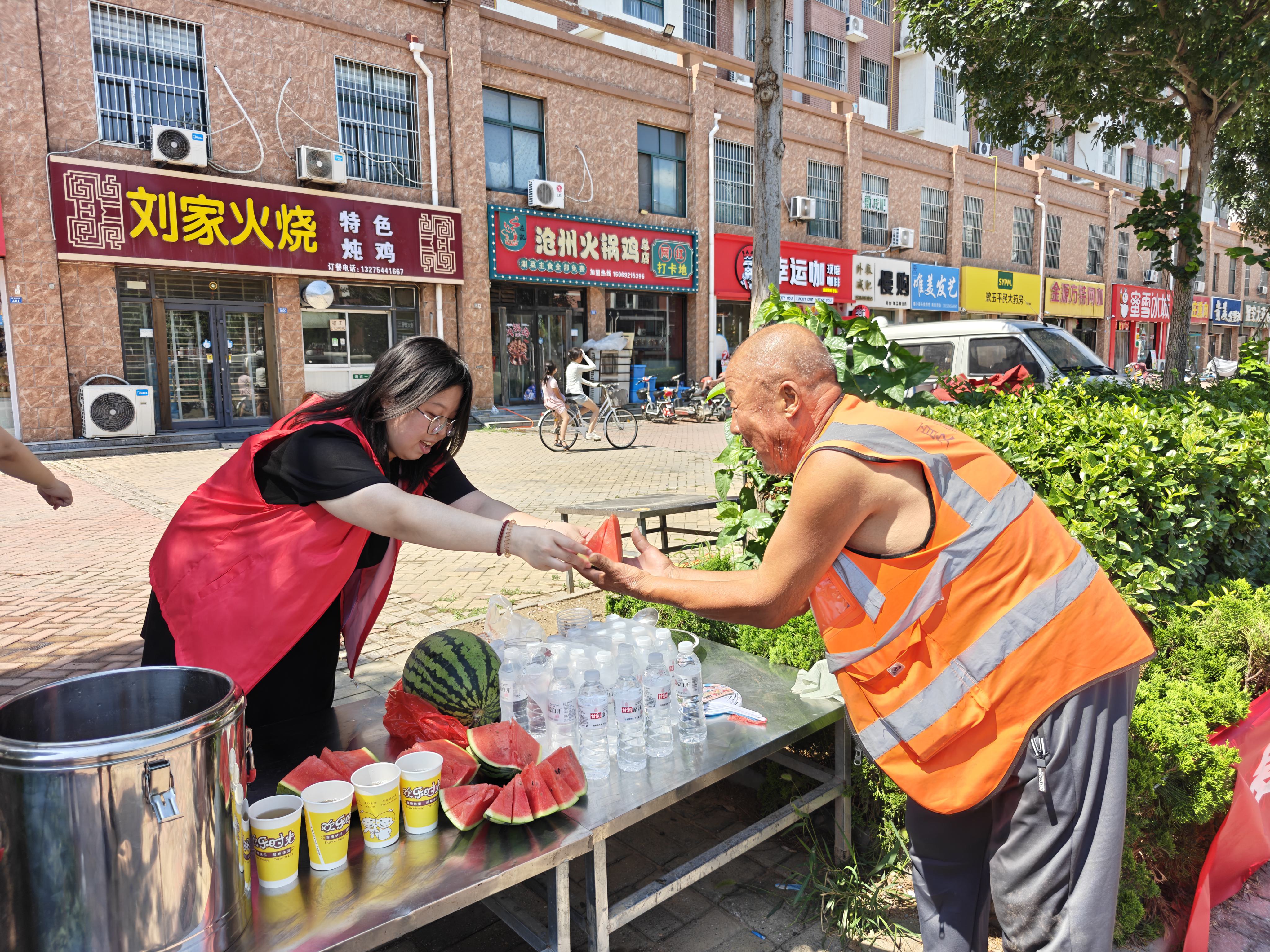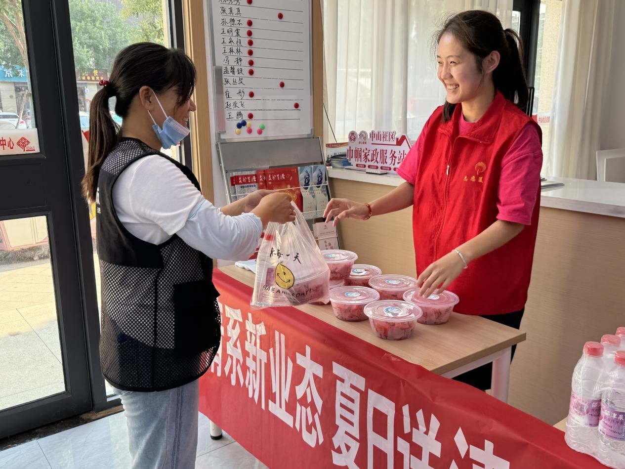 18支流动队 服务“跑”起来,清凉“送上门” “一块冰西瓜下肚,浑身的暑气都消了,心里舒坦!”在金都社区的“清凉小摊”前,外卖小哥陈光旺笑得格外甜。一张桌子、一个保温桶、几把凳子,精心熬制的酸梅汤、绿豆汤和冰镇西瓜,18个城市社区志愿服务队,在公园、路口支起“清凉小摊”,酸梅汤、绿豆汤、小扇子免费供应。泰和社区悦动公园小摊,绿豆汤、小扇子“随拿随走”;舜泉、华夏社区志愿者更是提着清凉物资走进工地、快递点“送货上门”;阳光社区的“急救药品袋”里为外卖骑手准备着藿香正气水、冰凉贴等实用物品,不仅方便骑手们在工作途中应急使用,及时为同伴或路人提供帮助,也有效引导新就业群体“随手志愿”,积极参与基层治理。