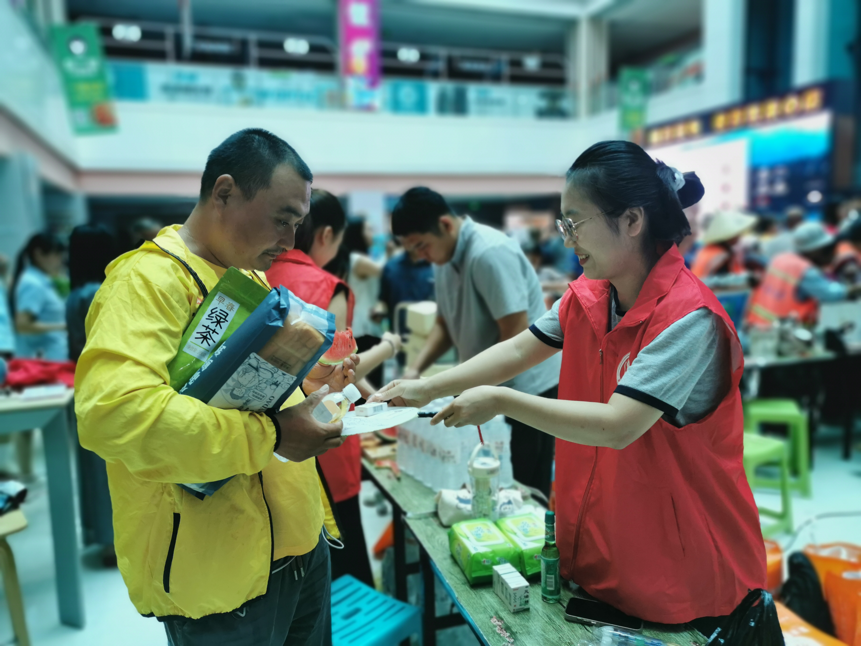 108场活动 物资“送上门”,知识“传到手” 7月,德百商场的“送清凉”专场志愿服务大集火热开张:现场,百余名户外劳动者代表不仅领取了爱心企业捐赠的矿泉水、面包、茶叶等爱心物资,还跟着志愿者学了防中暑、防诈骗等实用知识。同期举办的“志愿服务大集”上,义诊、推拿、义剪、视力检测等摊位前排起长队,环卫工李大姐拎着“大礼包”说:“既拿物资又学防中暑妙招,这个七一特别暖心!”据统计,5月以来,全县已累计开展各类志愿服务108场,300余名志愿者参与其中,惠及户外劳动者2000余人次。