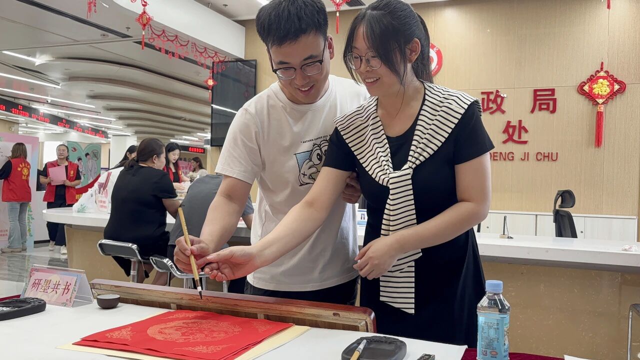 民俗传承,文化体验让传统“触手可及” 8月29日,利津县成功举办“笔墨绘七夕·同心书婚约”主题登记活动。活动设置了多个富有文化意义的特色环节:书法体验区邀请新人以墨传情,寓意婚姻生活中相互包容、同心同行;剪纸艺术体验则让新人在动手实践中感受非遗魅力,为婚姻注入传统艺术之美。各个环节的设计巧妙融合了传统文化与现代婚俗理念,受到了新人们的广泛欢迎。