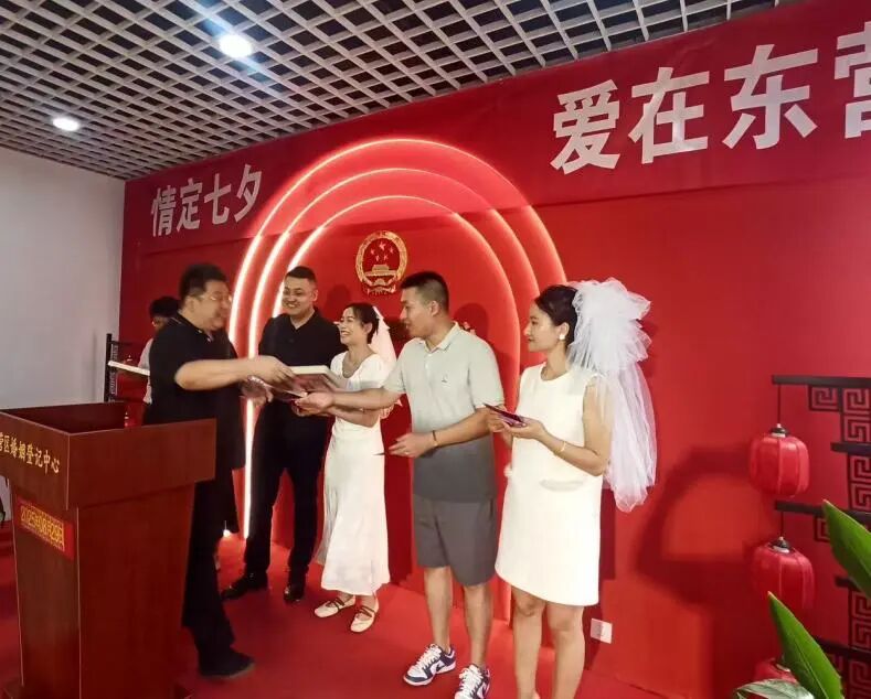 七夕佳节,牛郎织女的浪漫传说跨越千年,在东营大地焕发出新的时代光彩。作为中华优秀传统文化的重要组成部分,七夕不仅承载着人们对忠贞爱情和美好生活的向往,更成为新时代推进精神文明建设、深化移风易俗的重要载体。2025年七夕期间,东营市以“我们的节日·七夕”为主题,精心组织了一系列形式新颖、内涵丰富的文化活动,将传统民俗与当代价值有机融合,真正让节日活动热在基层、暖在人心,为全市人民奉上一场精彩纷呈的文化盛宴。 精准服务,价值引领为幸福保驾护航 “领结婚证不仅仅是一种形式,更是一次庄重的成人礼,一次家庭建设的启蒙礼。”8月29日,在广饶县西关小镇婚姻登记巡回点,婚姻家庭辅导老师孟海燕正在为新人讲授婚前“必修课”。她围绕婚姻中的沟通技巧、责任认知、矛盾化解及相关法律知识,深入浅出地讲解,为新人树立正确的婚姻家庭观提供及时引导。