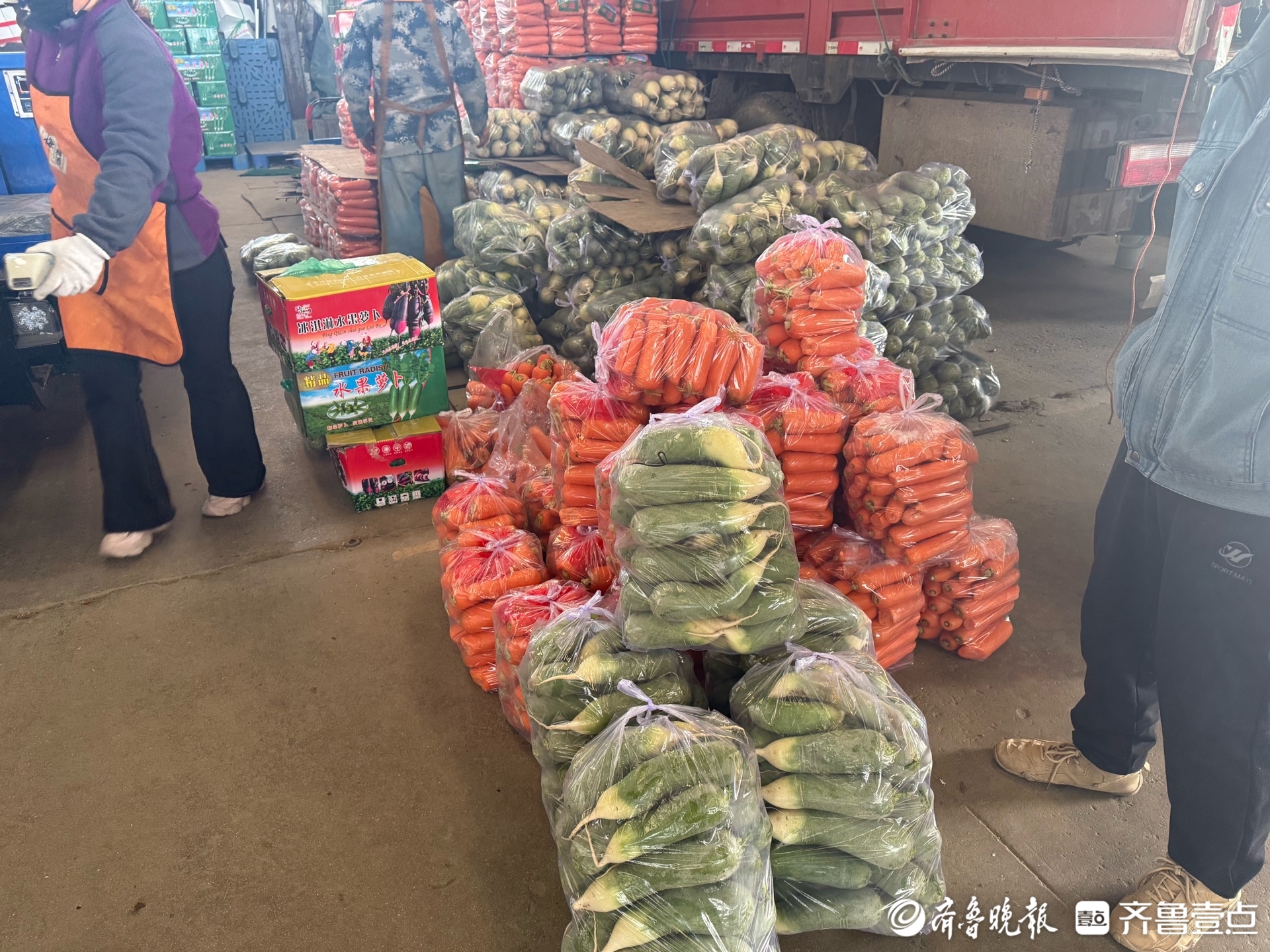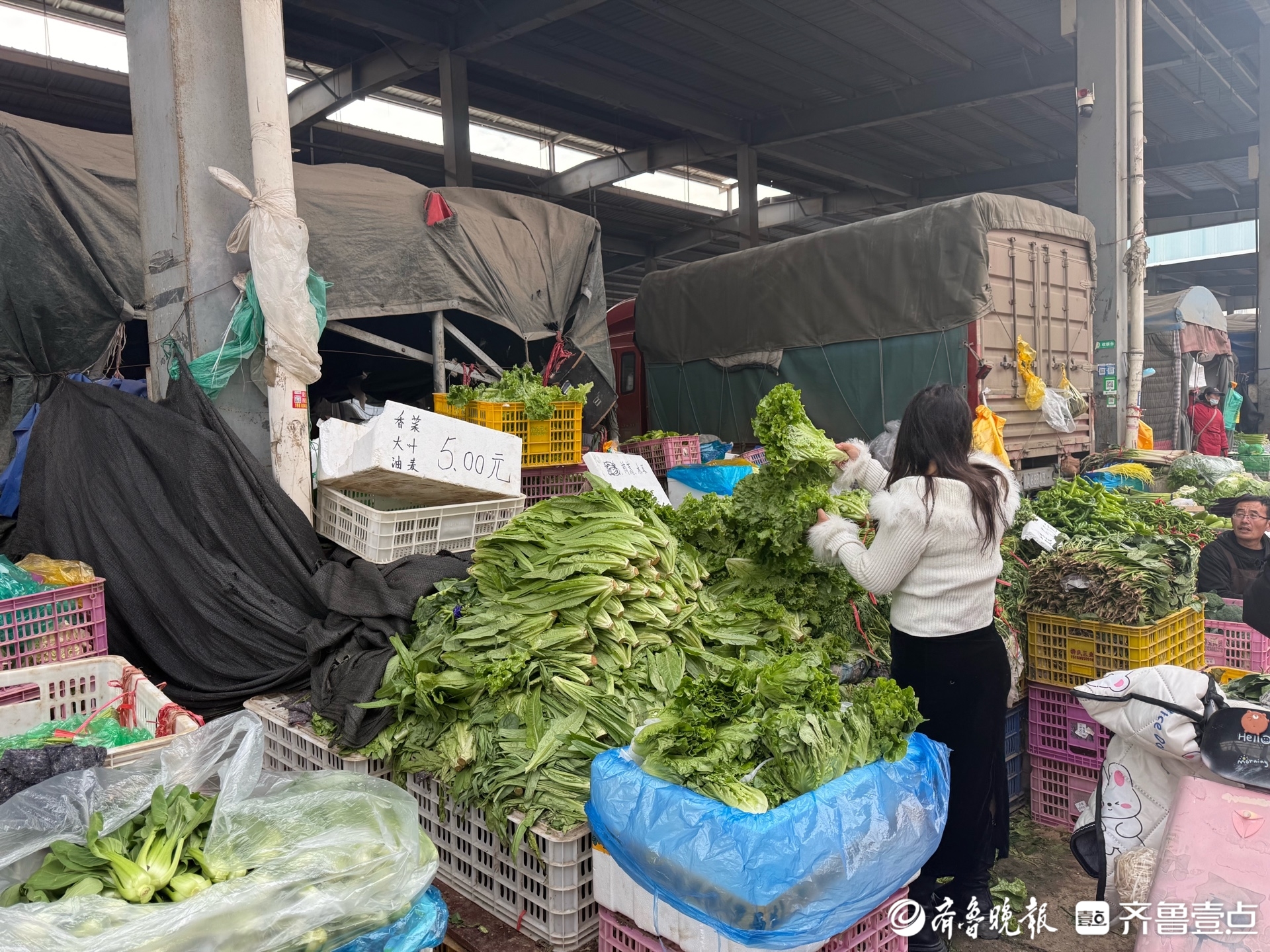 很快,商贩们就将摊位码放得满满当当,白菜墩实、萝卜新鲜、土豆滚圆,这些耐储存的冬储菜成了市场的“主角”。 “水果萝卜,35元一箱,一箱30斤。这边有便宜点的,33元一箱。”商贩老张的吆喝声在嘈杂的市场里格外响亮。 “今年菜价有些高,比如他家的萝卜,往年同样一箱也就22块钱,今年涨到了35块。”前来采购的超市老板杨先生说。 不过,市场也提供了多元选择,在老张摊位不远处,“河北萝卜,8毛一斤”的招牌下,吸引了不少精打细算的市民驻足询价。 菜价的变化,市民感受是最直接的。在15公里外的七里堡综合批发市场,同样的喧嚣充斥着每个角落。人声鼎沸中,询价声、讨价还价声此起彼伏,记者穿梭其中,耳边不时传来顾客的低语:“这菜价还是高啊……” 在一家西红柿摊位前,市民刘女士正弯腰挑选,“前阵子连着下雨,西红柿卖到6块钱一斤,现在降到四五块钱一斤,还是有点贵”。
