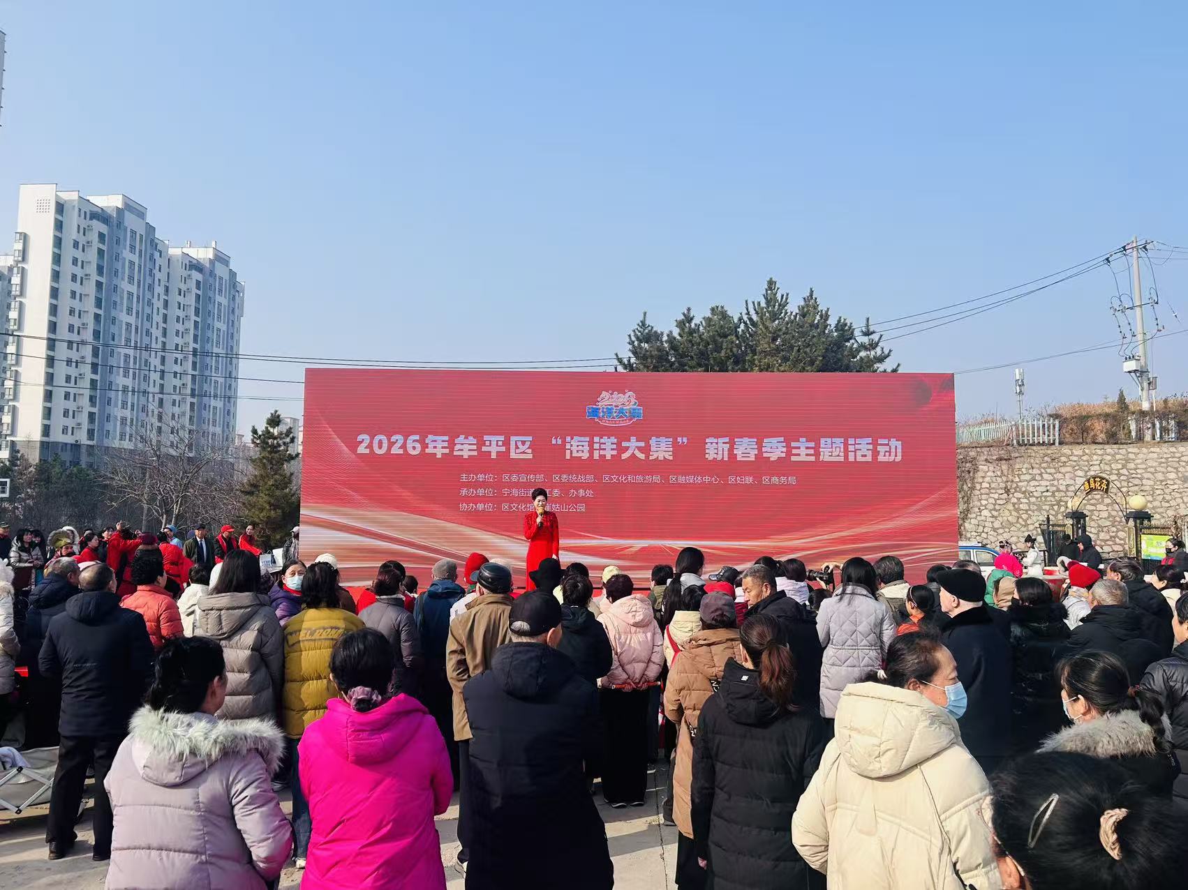 锣鼓喧天催春意,民俗焕彩贺新春。2月4日,为期5天的2026年牟平区“海洋大集”新春季主题活动在崔姑山公园正式拉开帷幕。领导嘉宾共同登台触发启动装置,与现场千余名市民一同见证这场集民俗展演、非遗体验、惠民消费、邻里互动于一体的新春盛会启幕,让浓浓的年味与烟火气温暖全城。