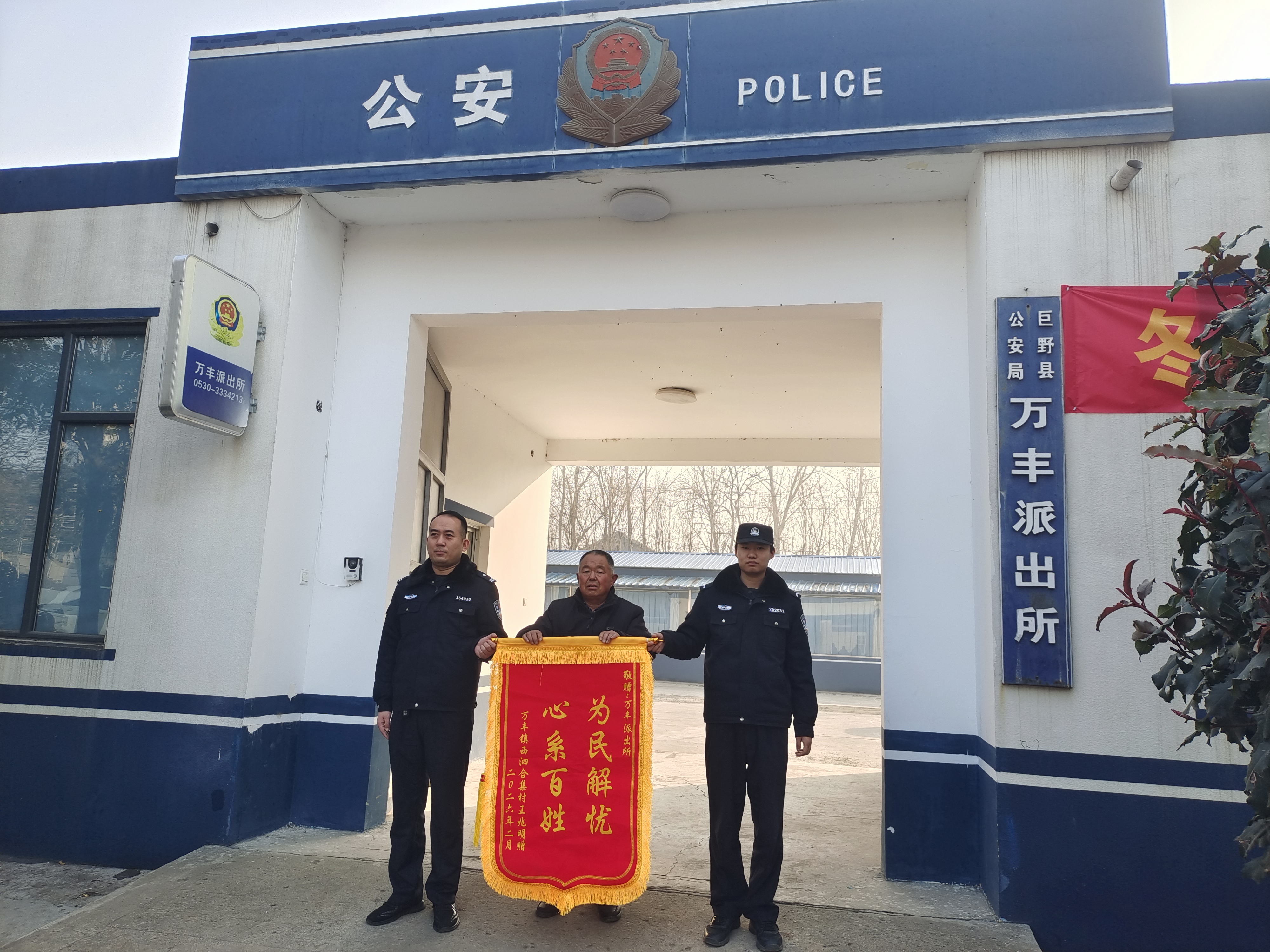 周千清 通讯员 许学秋 近日,巨野县公安局万丰派出所在深入开展“冬季守护”专项行动期间,连续收到辖区群众送来的两面锦旗,对民警不畏严寒、细致追赃、全力护民的工作作风表达高度认可与诚挚感谢。